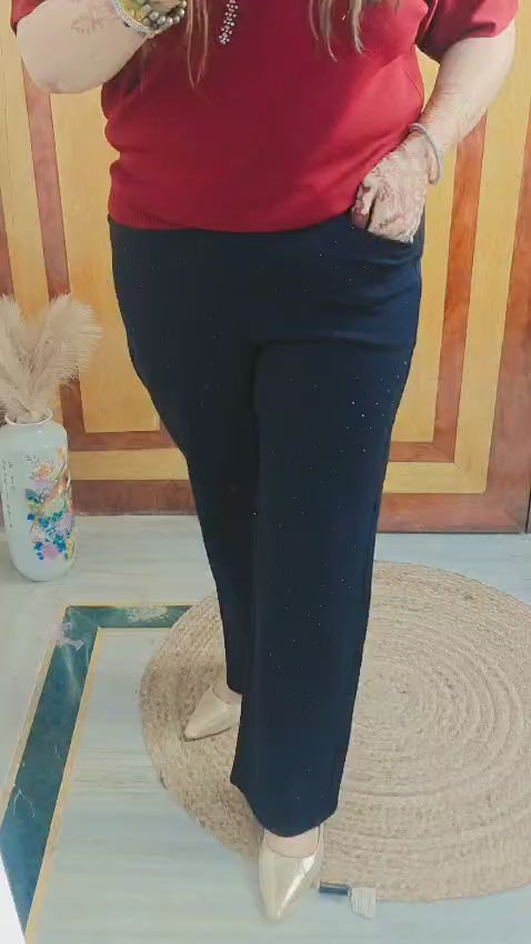 "Black Glam Sequin Stripe Flared bellbottom pant