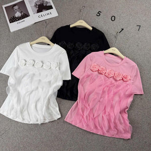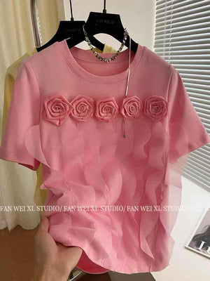 3D Rose Petal Embellished Pink Top – Elegant & Feminine Vibes