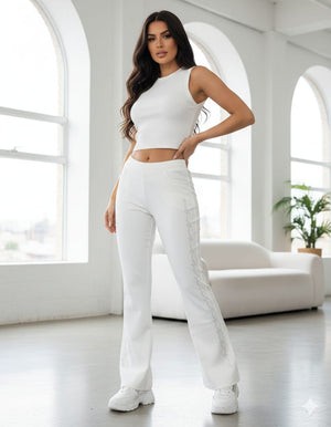Elevate your everyday wardrobe with these sophisticated bootcut pants featuring eye-catching bling side detailing. Crafted for a flattering silhouette, the bootcut design elongates the leg while the shimmering embellishments add a touch of glamour to casual and semi-formal occasions. The side-detail bling creates visual interest without overwhelming your look, making these pants versatile enough to pair with simple tops or statement pieces. Perfect for those who appreciate subtle luxury and contemporary style, these pants deliver both comfort and confidence with every wear.