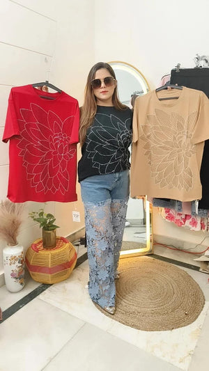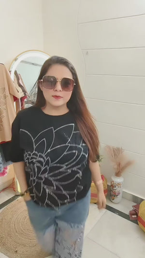 The Bloom Sequin Statement Tee is a beautiful addition to any wardrobe. With its intricate sequin design, it adds a touch of glamour to any outfit. Made with high-quality materials, this tee is comfortable and durable. Perfect for dressing up or down, it is a versatile and stylish choice.
