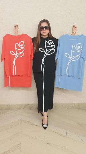 Upgrade your wardrobe with Bloom with Style: The Ultimate Rose Embroidered Co-ord Sets! Featuring elegant rose embroidery, this set is the perfect combination of style and comfort. Elevate your fashion game with this versatile and trendy co-ord set. Get yours today and bloom in style!