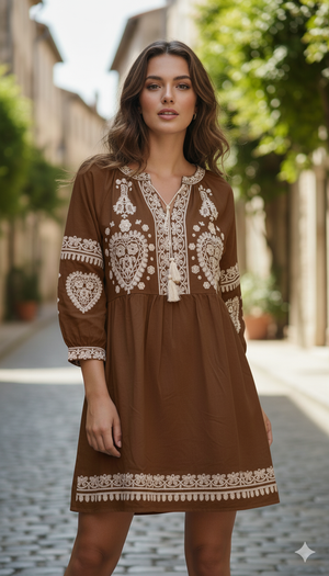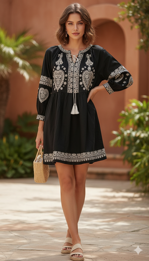 Boho Dress This Boho dress by Fashion Bliss exudes effortless bohemian style. Made from high-quality materials, it boasts a relaxed fit and intricate details, perfect for any occasion. Enjoy a comfortable and chic look with this must-have dress in your wardrobe.