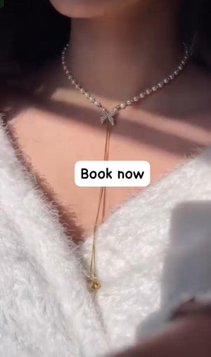 Discover the exquisite beauty of our Butterfly Elegance Pearl Necklace. Handcrafted with precision and attention to detail, this necklace features a delicate butterfly design, adorned with lustrous pearls. Add a touch of elegance to any outfit with this stunning piece.
