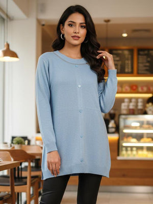 Button-Detail with bow neck line Long top Knit Sweater