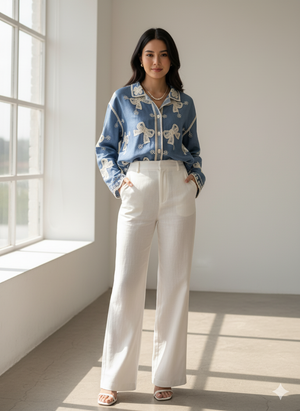 Upgrade your casual wardrobe with "Casual Meets Cute: Bow Denim Vibes". This stylish and versatile piece adds a touch of cuteness with the bow detail, while the denim fabric provides both comfort and durability. Perfect for any casual occasion, it's a must-have for your wardrobe.
