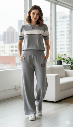 This chic summer coord set features bold black stripes for effortless elegance. Stay stylish and comfortable all day long with this versatile outfit. Perfect for any occasion, this set is a must-have for your summer wardrobe. Upgrade your look with this chic and modern ensemble.