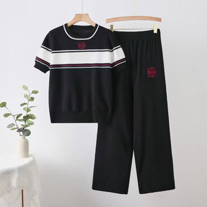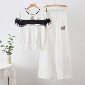 Chic Summer Coord Set with Bold Black Stripes - Effortless Elegance"