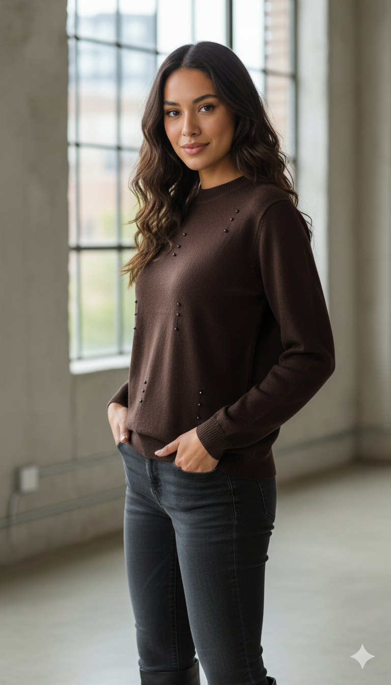 Expertly crafted with a classic design, our pearl knitted winter top is the perfect addition to your cold weather wardrobe. Made from high-quality materials, this top offers both style and warmth. Its timeless elegance will elevate any outfit while keeping you comfortable all season long.