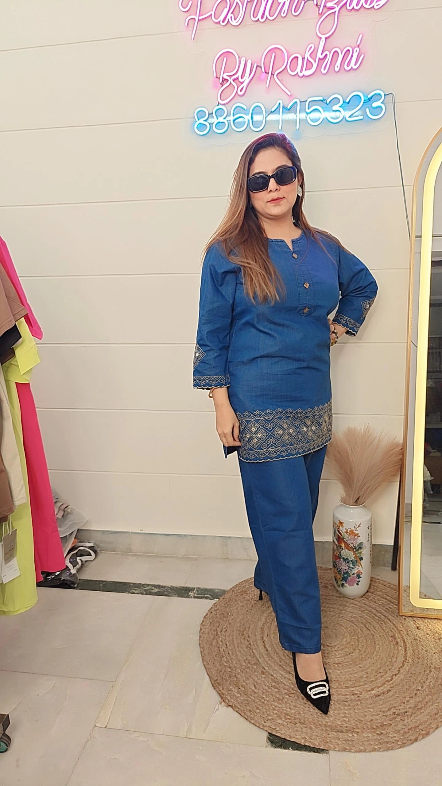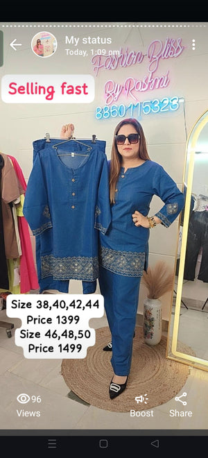Classy in Blue: Statement Embroidered Coord