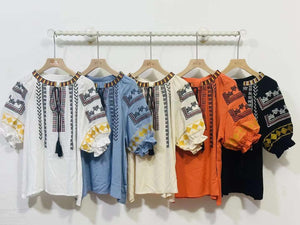 Expertly crafted from soft, breathable cotton, our embroidery top adds a touch of elegance to any outfit. With intricate embroidery detailing, this top is perfect for both casual and formal occasions. Stay comfortable and stylish all day long.