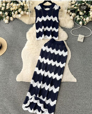 Fashion bliss Crochet Top & Midi Skirt Co-Ord Set