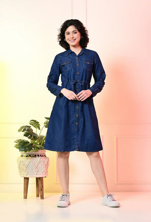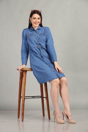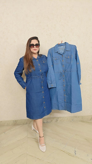 "Upgrade your wardrobe with our Denim Diva Shirt Dress, now available in two chic shades. Made with high-quality denim, this dress is perfect for any occasion. Elevate your style with this versatile and trendy piece. Stylish and comfortable, our dress is a must-have for any fashion-forward individual."