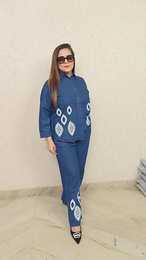 This Denim Elegance Coord Set with Embroidery features high-quality denim cordsets, providing a durable and stylish option for any occasion. With its intricate embroidery, this set adds a touch of elegance and sophistication to your wardrobe. Invest in the perfect balance of comfort and style with Denim Elegance.