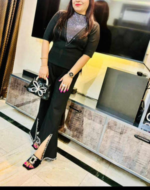 High waist designer cut stretchable pant - Payal Sworovski