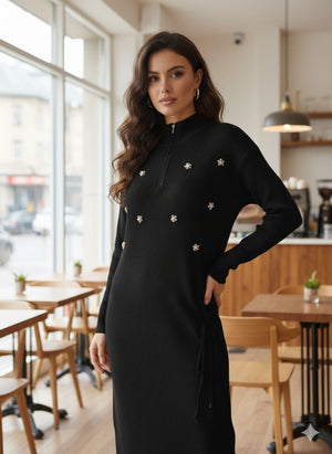 Elevate your wardrobe with this exquisite dress adorned with delicate pearl flowers. Crafted with meticulous attention to detail, the lustrous pearl embellishments create a sophisticated focal point that transitions seamlessly from daytime elegance to evening occasions. The thoughtful placement of floral motifs adds dimensional interest while maintaining a refined aesthetic. Perfect for those who appreciate timeless design with contemporary flair, this piece combines premium craftsmanship with versatile styling potential. An investment in understated luxury that celebrates both artistry and wearability.