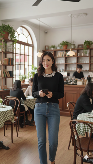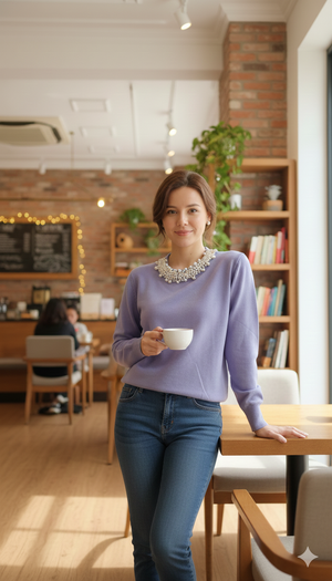 Elevate your everyday wardrobe with this sophisticated crewneck sweater, thoughtfully designed for the discerning dresser. The refined silhouette pairs seamlessly with tailored trousers or your favorite denim, while delicate faux pearl embellishments at the neckline add an understated touch of luxury. Crafted for comfort and versatility, this piece transitions effortlessly from office to evening, making it an essential investment for a polished, contemporary look.