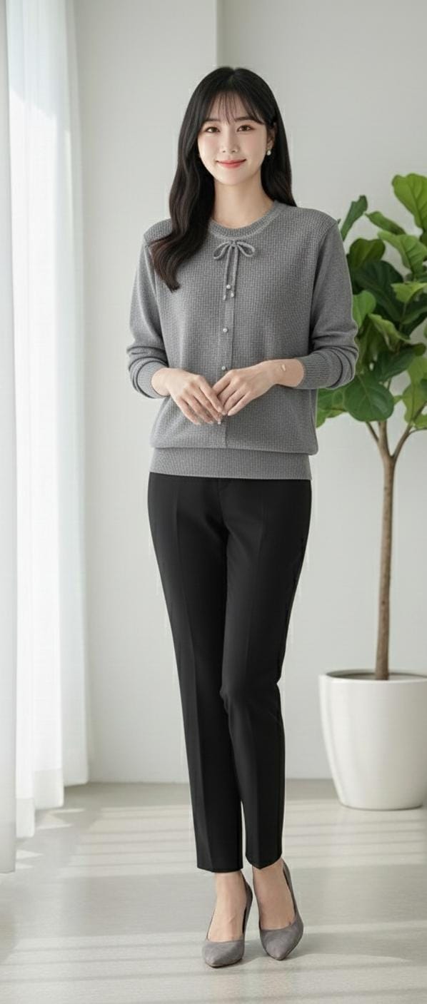 Elevate your everyday wardrobe with this sophisticated crewneck sweater, expertly crafted to deliver both style and comfort. The refined grey tone serves as a versatile foundation, while the distinctive neck tie detail adds a polished, fashion-forward touch. Faux pearl embellishments on the placket introduce subtle luxury and visual interest, making this piece ideal for transitioning from casual settings to more refined occasions. The classic crewneck silhouette ensures timeless appeal, while quality construction promises durability through countless wears. Perfect for layering or wearing solo, this sweater demonstrates how thoughtful design elements can transform a basic staple into a statement piece.