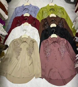 "These Elegant luxe Embroidered Satin Shirts showcase a high-quality and opulent design. Made with soft and luxurious satin material, these shirts provide both comfort and sophistication. Perfect for any formal occasion, these shirts will elevate your style and make you stand out from the crowd."