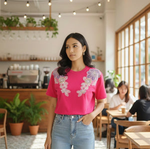 Elevate your evening wardrobe with this exquisitely embroidered midnight top, where deep indigo fabric meets intricate blue bloom detailing. The expert craftsmanship showcases delicate embroidery work that catches light beautifully, creating dimension and visual interest. Perfect for special occasions or elevated casual wear, this piece combines timeless elegance with contemporary design. The rich midnight tone pairs effortlessly with both neutral and bold bottoms, making it a versatile addition to any sophisticated collection. Crafted for those who appreciate refined details and quality