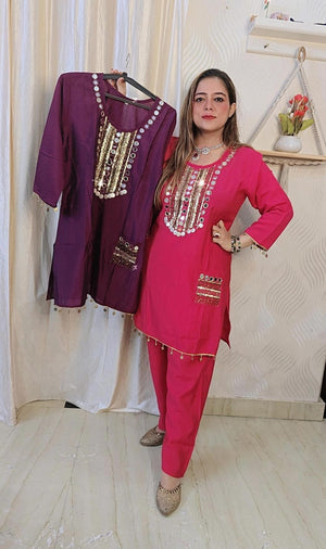 Illuminate your festival attire with our handcrafted cordset, featuring intricate original mirror work. Enhance your look and stand out in the crowd with our unique festival cordset, specially designed for the occasion. Embrace the festive spirit with our one of a kind cordset, perfect for any celebration.