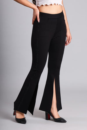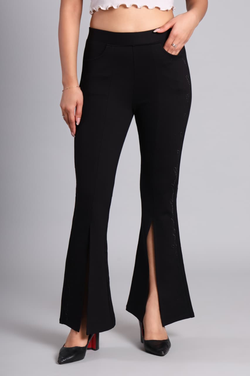 Add a touch of elegance to your wardrobe with these flared pants. The unique front cut side work adds a trendy twist. Made from high-quality materials, these pants offer both comfort and style. Elevate your outfit with this chic piece. Boost your style game with these flared pants, complete with the perfect touch of elegance. You'll make a statement with the unique front cut side work, creating a trendy twist. Plus, they're made with high-quality materials that provide both comfort and style. Take your outfit to the next level with this must-have piece.