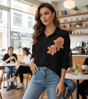 Embrace effortless elegance with this oversized blouse shirt, featuring delicate floral detailing that adds a touch of feminine charm. The relaxed fit offers comfort and versatility, perfect for casual outings or layering. Crafted for a modern, laid-back aesthetic, this piece transitions seamlessly from day to evening wear. Ideal for those who appreciate understated style with botanical flair.