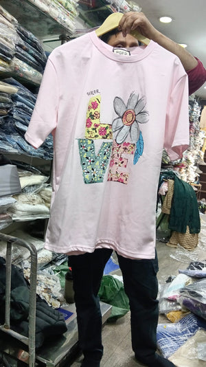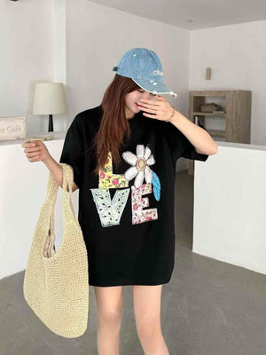 This Floral Love T-Shirt features an oversized fit, perfect for a casual, chic look. Its floral design adds a touch of romance, making it a versatile piece for any occasion. Embrace effortless style with this must-have addition to your wardrobe.