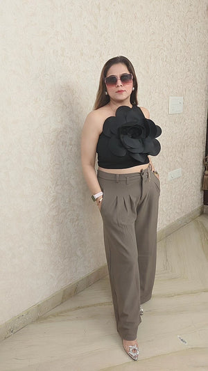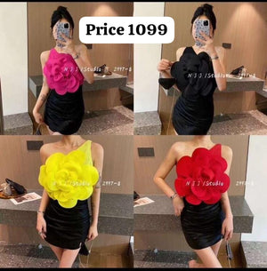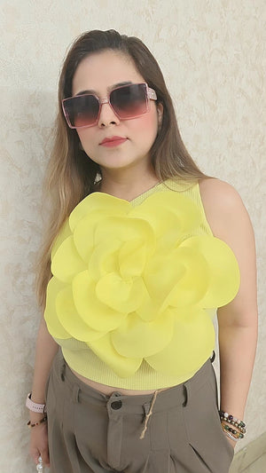 This flower decor crop top features a unique off-shoulder design, perfect for adding a touch of style to your wardrobe. Made with delicate floral details, this top is sure to make a statement and elevate any outfit. Stay on trend and feel confident in this fashionable crop top.