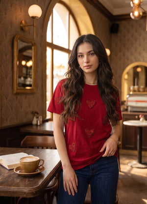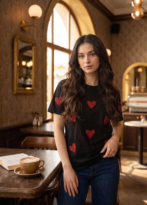 Elevate your everyday style with the Heartbeat Sequin Tee—a playful blend of comfort and sparkle. Featuring a shimmering heartbeat design in sequins across the chest, this tee brings a touch of glamour to casual wear. Perfect for date nights, parties, or whenever you want to add a little extra shine to your look. Crafted for a flattering fit, it pairs effortlessly with jeans, skirts, or leggings for versatile styling options.