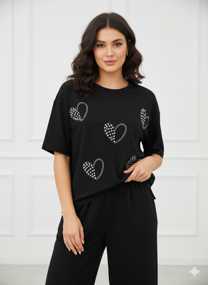 Heartfelt Sparkle Coord Set – Black & White Edition