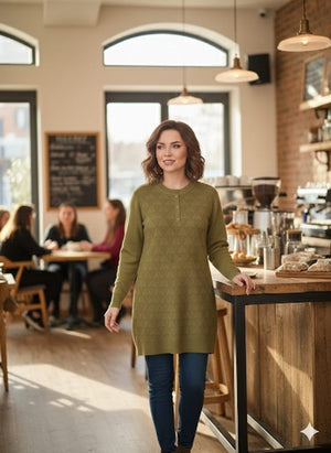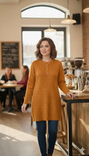 Elevate your winter wardrobe with this sophisticated Henley-style long top, designed for both comfort and timeless appeal. The classic button-neck construction offers versatile styling options—wear it buttoned for a polished look or open as a layering piece. Crafted from quality fabric that provides warmth without bulk, this top transitions seamlessly from casual weekends to professional settings. The extended length ensures proper coverage, while the structured Henley silhouette flatters various body types. Perfect for layering under jackets or wearing standalone, this winter essential combines understated elegance with practical functionality for the discerning wardrobe.