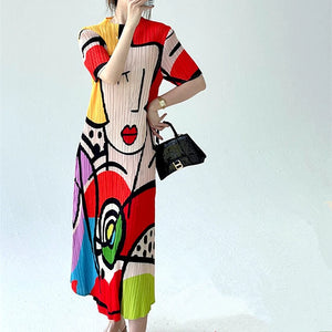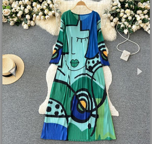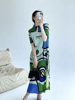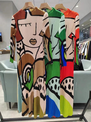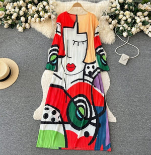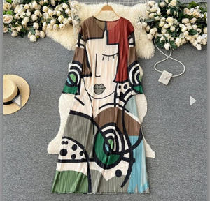 This imported dress features abstract prints and is available in sizes up to xxxl. Made with high-quality materials, it offers versatility and comfort for any occasion. Upgrade your wardrobe with this unique and stylish addition, perfect for fashion-forward individuals.