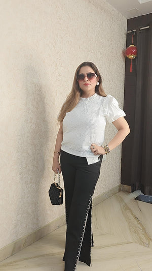 This top, made with the finest Korean pearls, elevates any outfit with its delicate, timeless design. Enjoy the luxurious feeling of pearls while staying comfortable with its free size and easy-wear design. With its versatile style, this top is perfect for any occasion.