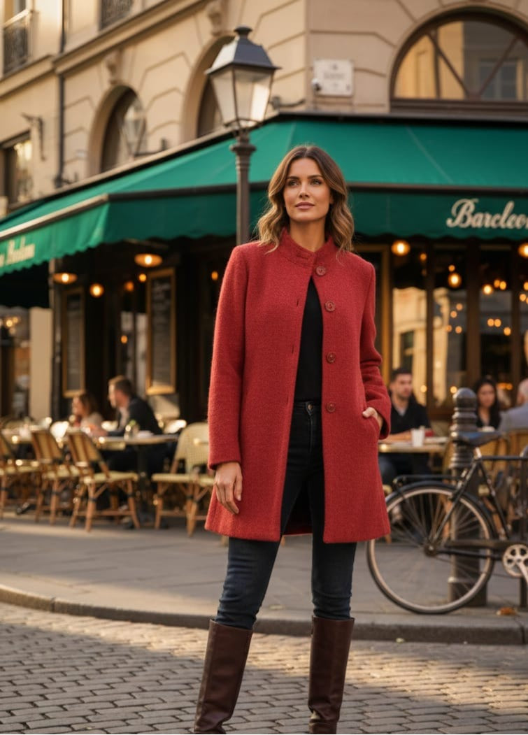 Elevate your winter wardrobe with this sophisticated Mandarin Collar Wool Blend Coat. Crafted from a premium wool blend, this piece delivers exceptional warmth without excess bulk, making it ideal for layering through cooler months. The distinctive mandarin collar adds refined elegance and a contemporary edge to your silhouette. Designed for versatility, it transitions seamlessly from professional settings to casual outings. The quality construction ensures durability and lasting style, while the structured fit flatters various body types. A timeless investment piece that combines comfort with understated luxury.