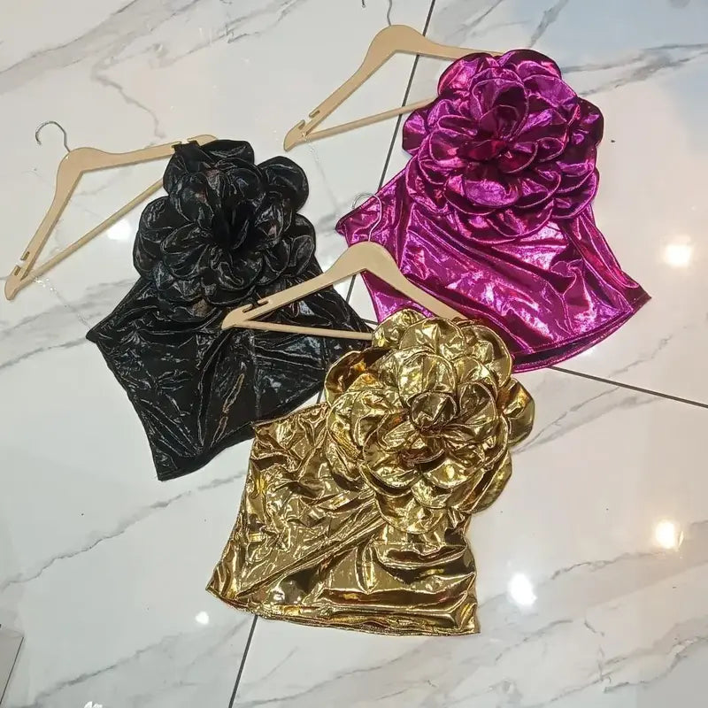 Metallic flower top