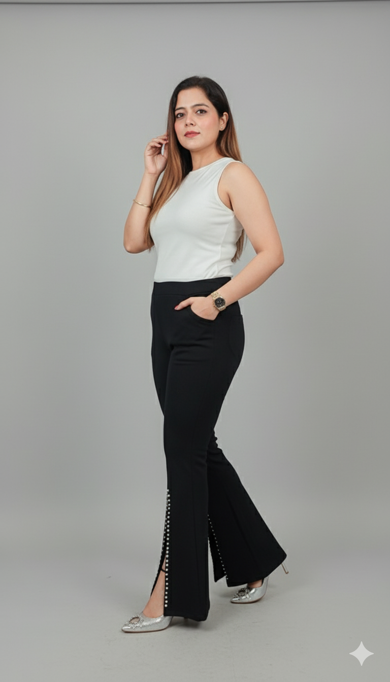 Expertly crafted with premium quality, these front cut pants are the perfect addition to any wardrobe. The stylish stone detailing adds a touch of elegance, making them suitable for both casual and party wear. Upgrade your style with confidence and comfort.