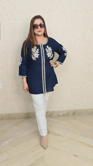 Navy Blue Floral Embroidered Kurti - Effortless Style for Every Occasion