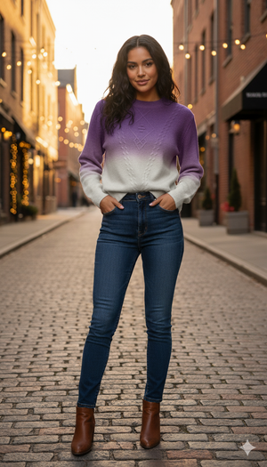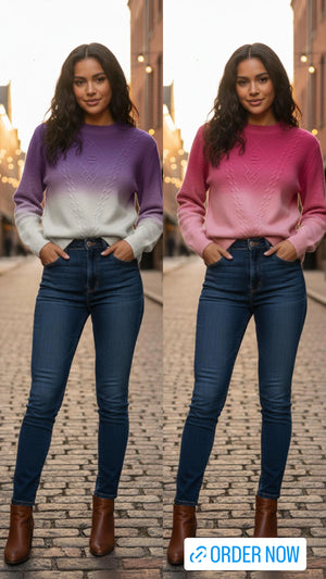 Upgrade your wardrobe with our Ombre Knit Crewneck Sweater. Made with a unique jacquard detail, this top adds a touch of elegance to any outfit. Crafted with expert precision, it offers both style and comfort in one piece. Elevate your look with our versatile and high-quality top.