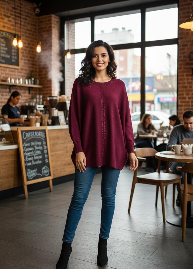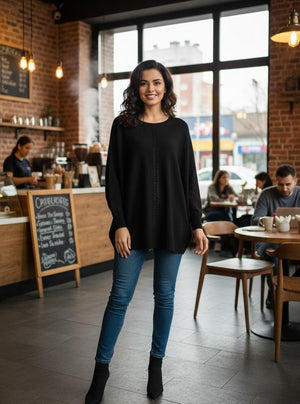 Effortlessly chic and supremely comfortable, this oversized dolman-sleeve tunic top combines relaxed silhouettes with contemporary style. The flowing batwing sleeves create an elegant drape that flatters all body types, while the generous cut ensures unrestricted movement throughout your day. Crafted for versatility, it pairs seamlessly with leggings, jeans, or tailored trousers for an instantly polished look. Perfect for casual outings, work settings, or layering during cooler months, this tunic delivers both sophistication and ease in one timeless piece.