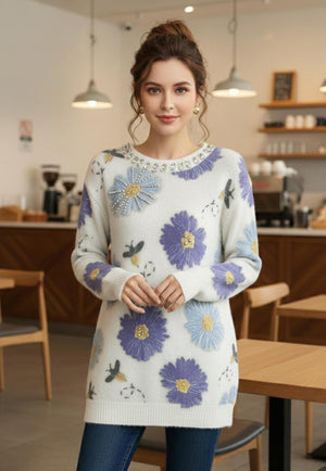 Elevate your knitwear collection with this sophisticated pastel floral intarsia knit sweater. Crafted with precision, the intarsia technique creates intricate floral motifs that blend seamlessly into the fabric, delivering a refined aesthetic without surface texture. The soft pastel palette offers versatile styling options, pairing effortlessly with denim, trousers, or skirts for both casual and polished occasions. Premium knit construction ensures durability and comfort, while the timeless design transcends seasonal trends. Perfect for those who appreciate understated elegance and quality craftsmanship in their everyday wardrobe.
