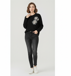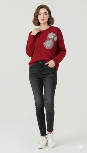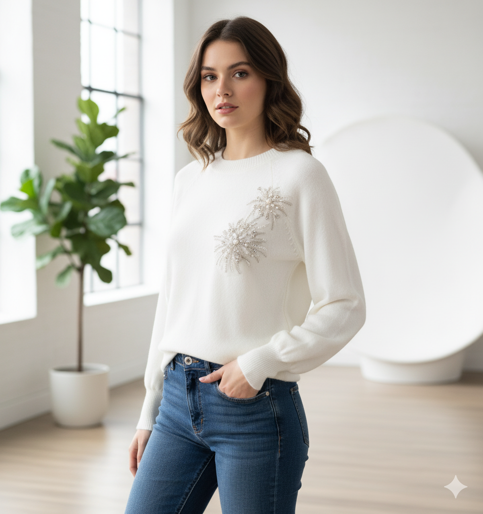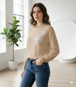Crafted with a beautiful combination of pearls and sequins, this winter top adds a touch of elegance to your cold weather wardrobe. Its knitted design provides warmth and comfort, while the intricate details make it a versatile piece for any occasion. Elevate your winter style with this must-have top.