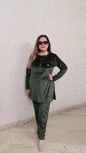 Crafted with premium velvet material, our winter long cordset hip cover will keep you stylish and warm. The soft velvet provides comfort and adds a touch of elegance to any outfit. Perfect for cold weather, it's both functional and fashionable. Upgrade your winter wardrobe with this luxurious piece.