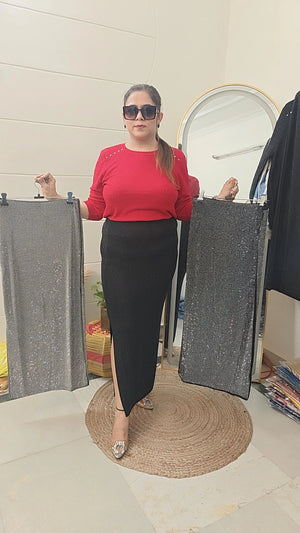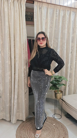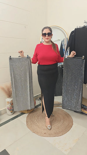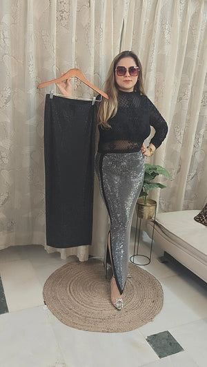This elegant Rhinestone Skirt features a long side slit design adorned with sparkling rhinestones. Perfect for any special occasion, this skirt adds a touch of glamour and sophistication to your ensemble. The high-quality rhinestones give a subtle shimmer, making you the center of attention. Elevate your style with this eye-catching skirt.