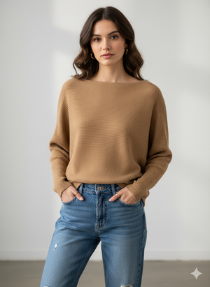 This ribbed boat neck top is perfect for the semi-winter season. Its flattering neckline and comfortable fabric make it a must-have for any wardrobe. Made with high-quality materials, this top is designed to keep you warm without compromising style. A versatile addition to your wardrobe.