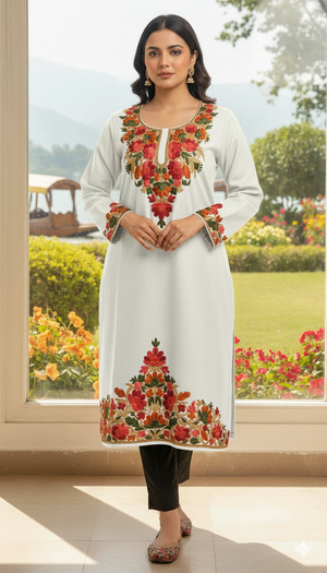 Experience the luxurious comfort of the Royal Threads of Kashmir's Elegant Floral Phiran Series. Made with high-quality materials, our phirans feature intricate floral designs that are both elegant and stylish. With their lightweight and breathable fabric, these phirans provide the perfect combination of comfort and style for any occasion.