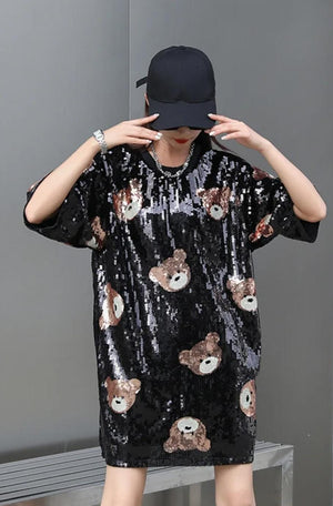 This sequin dress, available in a free size, adds luxurious sparkle to any wardrobe. Its versatile fit allows for effortless styling options, perfect for any occasion. Made with high-quality sequin material, this dress is both elegant and comfortable. Upgrade your fashion game with this stunning piece.