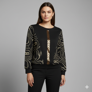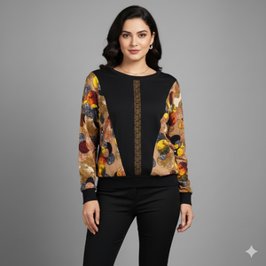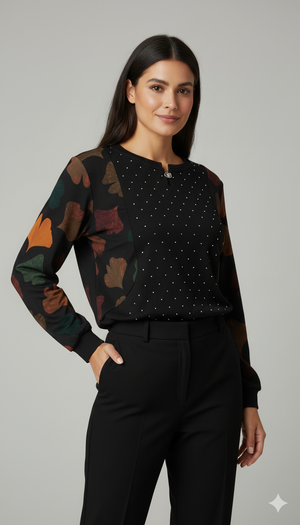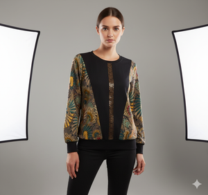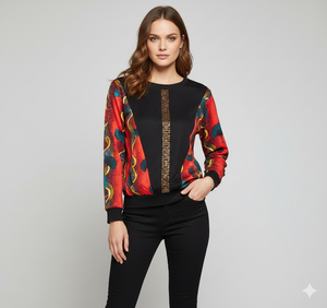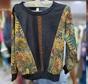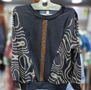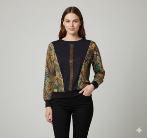 This Statement Print Sleeve top is perfect for the fashion-forward individual. Made with high-quality materials, this top is both stylish and comfortable. Its statement print sleeves add a unique touch to any outfit. Upgrade your wardrobe with this versatile and trendy top.