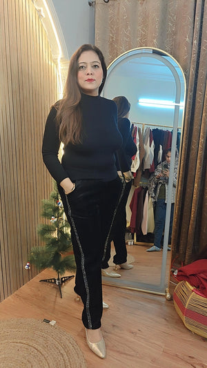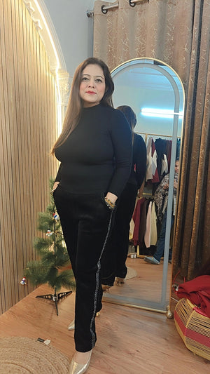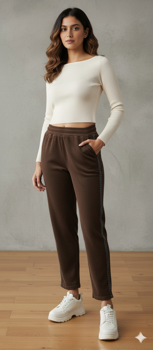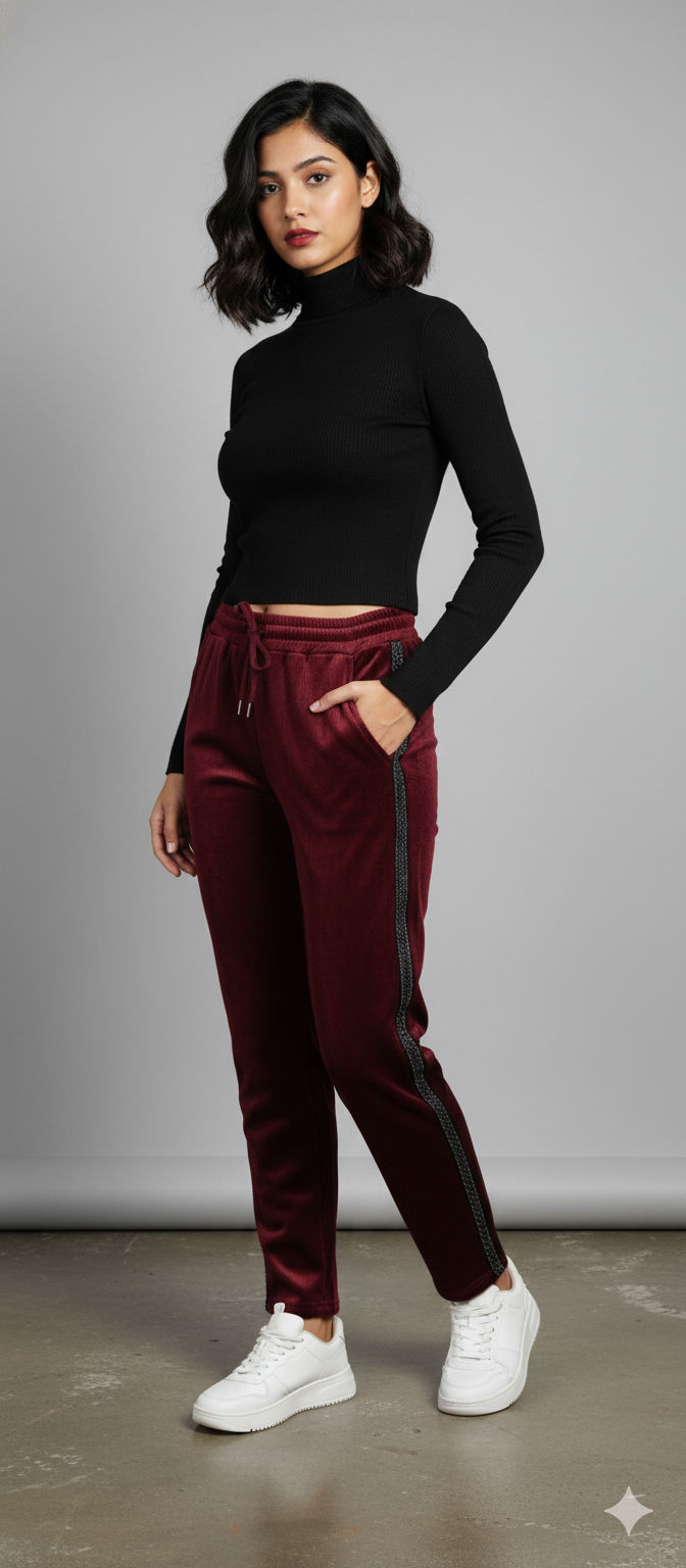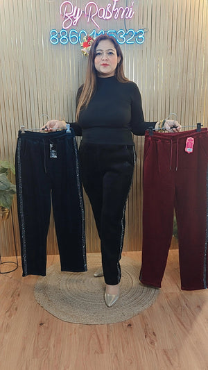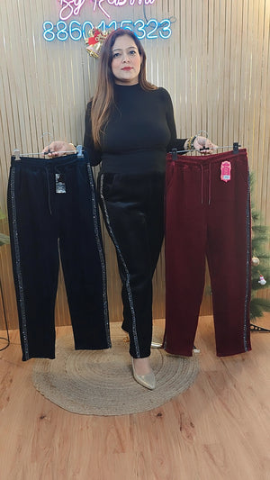 Stay Warm, Stay Stylish:Velvet Ribbed Lounge fleece Pants