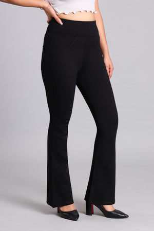 Expertly crafted with premium Roma stretchable fabric, these stylish bellbottom pants offer both comfort and style. Their high-quality material ensures durability and a flattering fit. Elevate your wardrobe with these versatile and fashionable pants.