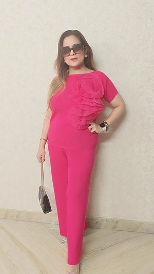 Upgrade your summer wardrobe with our Summer Cordset! Made with a lightweight and breathable knitting fabric, this stylish set is perfect for warm weather. The big flower detailing adds a touch of elegance and is sure to make you stand out. Stay cool and fashionable this summer with our Summer Cordset.